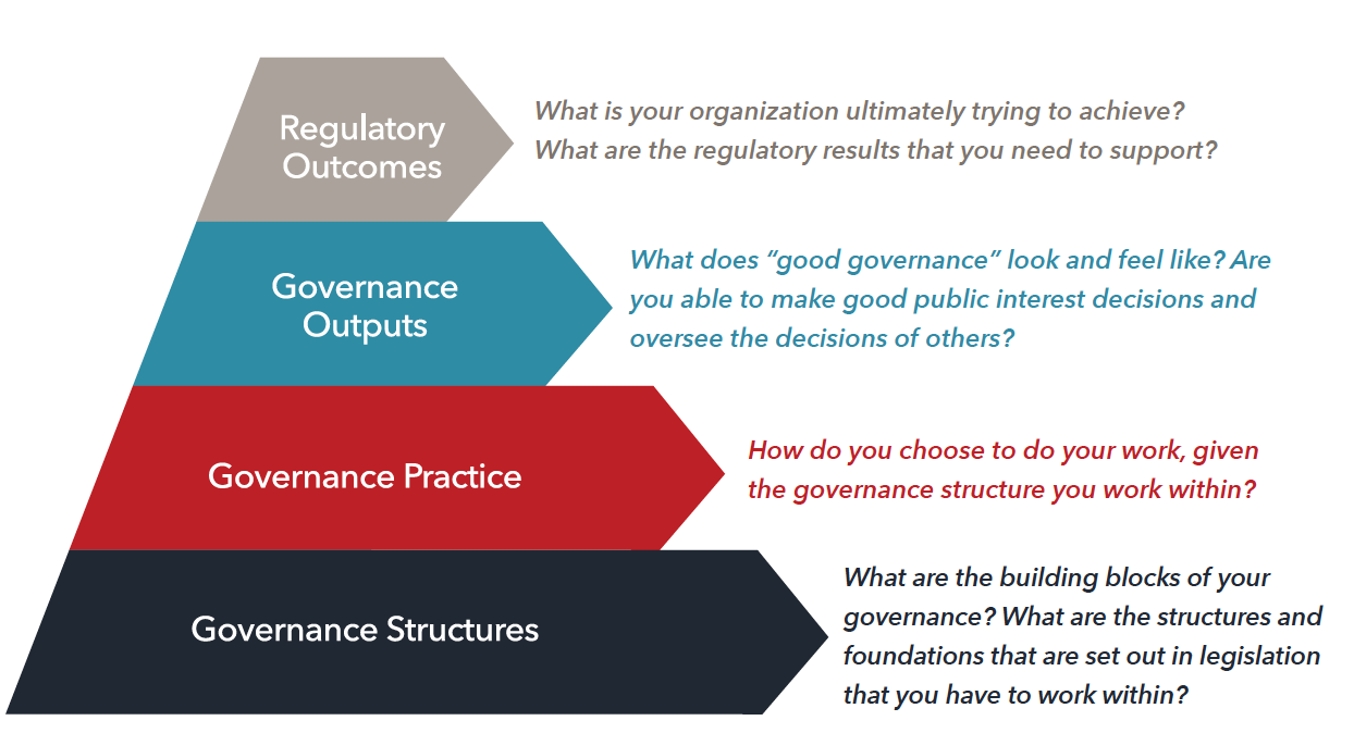We have developed the Governance Practice Assessment (GPA) as a practical, regulatory-specific, cost-effective tool to support a governing body assess the effectiveness of the elements of governance it has control over – what we call “governance practice.” Unlike a more fulsome governance review, a GPA does not dig into the elements of governance that a governing body does not have the authority to change – what we call the “governance structure.” The GPA provides a range of options from a pure “self-assessment” to models that incorporate more external feedback. Everything about the GPA, from the methodology, the questions asked, the process and the debrief discussion are all customized for regulatory boards with a mission to govern organizations with a mandate to serve and protect the public.